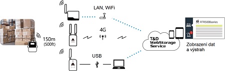 Při použití kolektoru dat RTR500BM nebo RTR500BW umožňuje automatické ukládání měřených dat v T&D WebStorage Service. Při použití kolektoru dat RTR500BC se data stahují ručně při připojení počítače, tabletu nebo mobilu. Nastavení dataloggeru je možné - prostřednictvím T&D WebStorage Service z libovolného webového prohlížeče, nebo