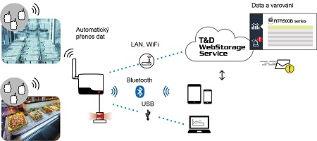 Správa dat v cloudu Naměřená data lze automaticky odesílat přes protokol HTTPS na bezplatný cloudový server „T&D WebStorage Service“. Tato služba usnadňuje sledování dat z libovolného webového prohlížeče na PC nebo mobilním zařízení, stejně jako sdílení dat na různých místech bez ohledu na vzdálenost.