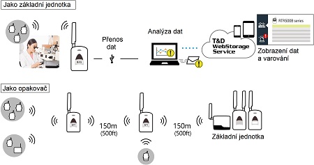 Zařízení RTR500BC lze kombinovat s jakýmkoli bezdrátovým datovým záznamníkem z řady RTR500B/RTR-500.